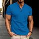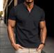 001 Cross-border 2024 Summer Men's Short Sleeve V-neck Waffle Solid Color Button Polo Shirt