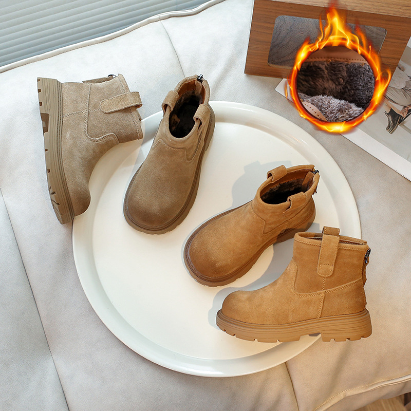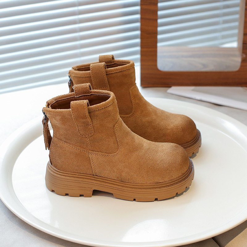 2024 autumn and winter new Martin boots for girls, British style frosted leather children's boots, girls' back zipper short boots