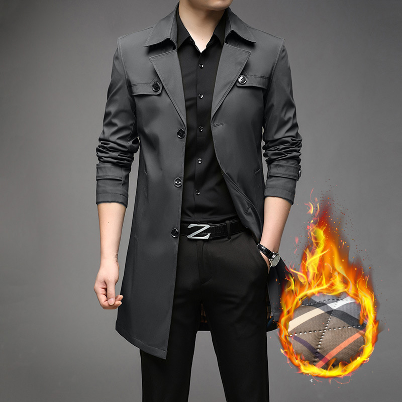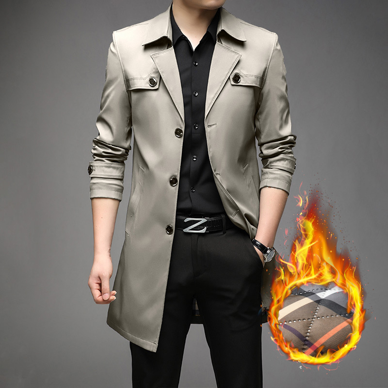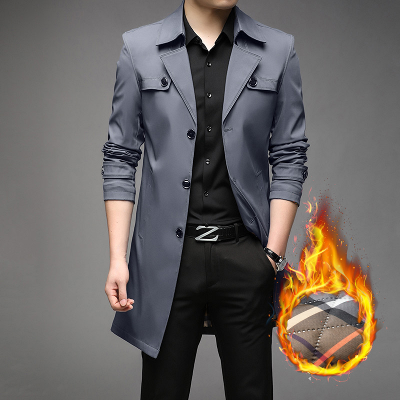 2024 Spring and Autumn New Mid Length Plus Cotton Windbreaker Men's Business Large Warm Coat 6 Colors