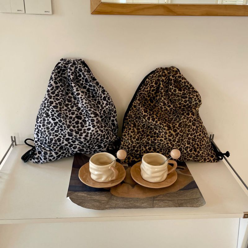 2025 Fall New Drawstring Pocket Backpack Travel Bag Leopard Print Casual Backpack