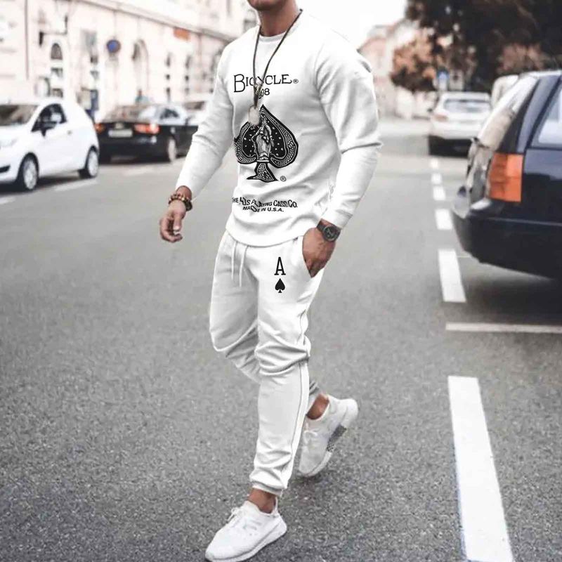 2023 New Poker Pattern 3D Printed Set Men's Casual Pullover Long Sleeve Top Sweatpants Set