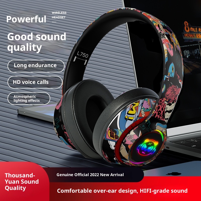 3c New Chinese Trend Graffiti Bluetooth Headphones Over-Ear Mobile Phone Wireless Sports Gaming Headset Universal Wholesale