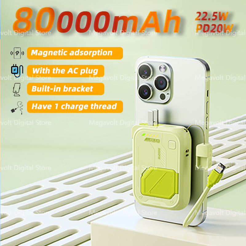 80000 MAh Portable Magnetic Bank PD20W Fast Charging Mobile Power Supply With AC Plug Charger For IPhone Samsung Xiaomi