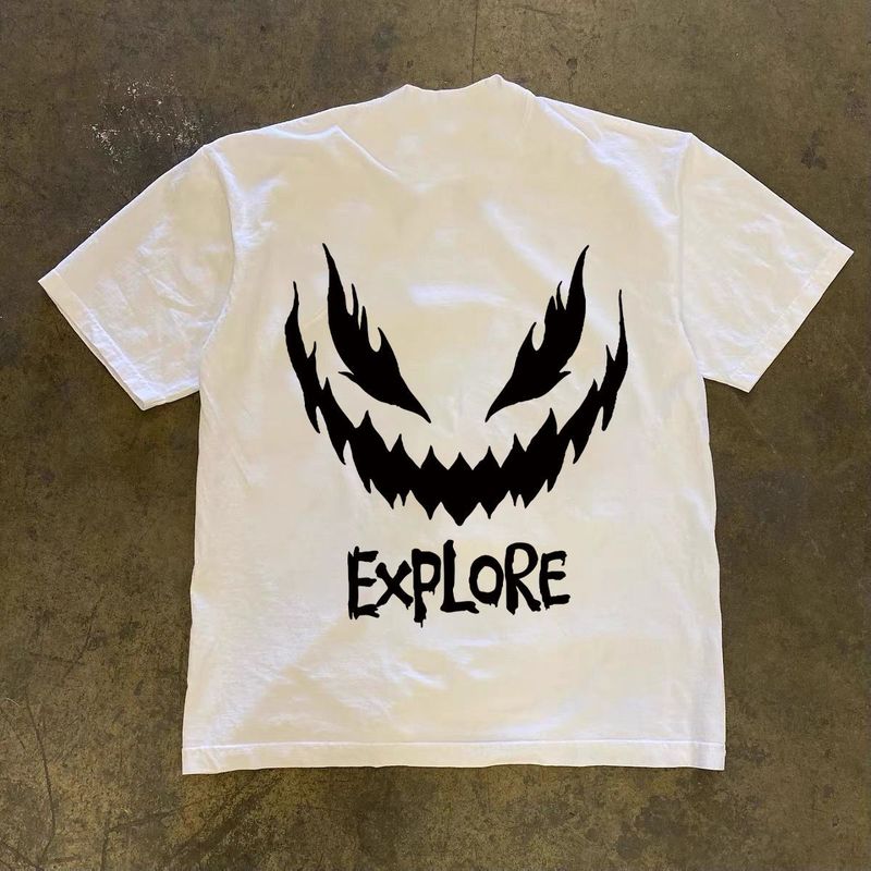 【 Return for undelivered items in seconds 】 American pure cotton trendy brand printed devil short sleeved T-shirt for men's summer loose and versatile top with half sleeves, high street style