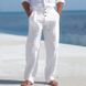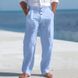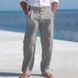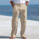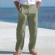 American Style Men's Cotton Linen Button Decoration Drawstring Summer Beach Straight Solid Color Comfortable Breathable