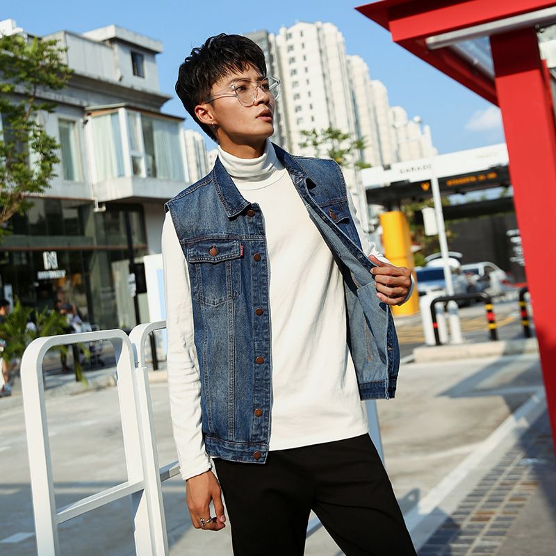 American Style New Trendy Brand Denim Vest Men's Loose Shoulder Cut Denim Jacket Men's Fat Plus Size Vest Fat
