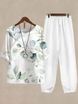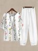 Women's High-End Five-Quarter Sleeve Top Round Neck Digital Print Two-Piece Summer Set