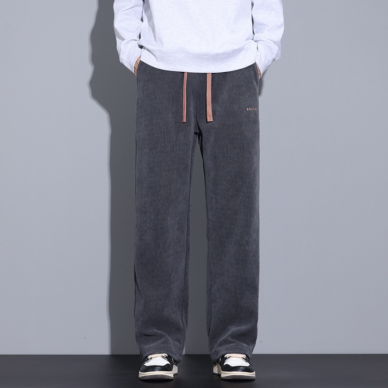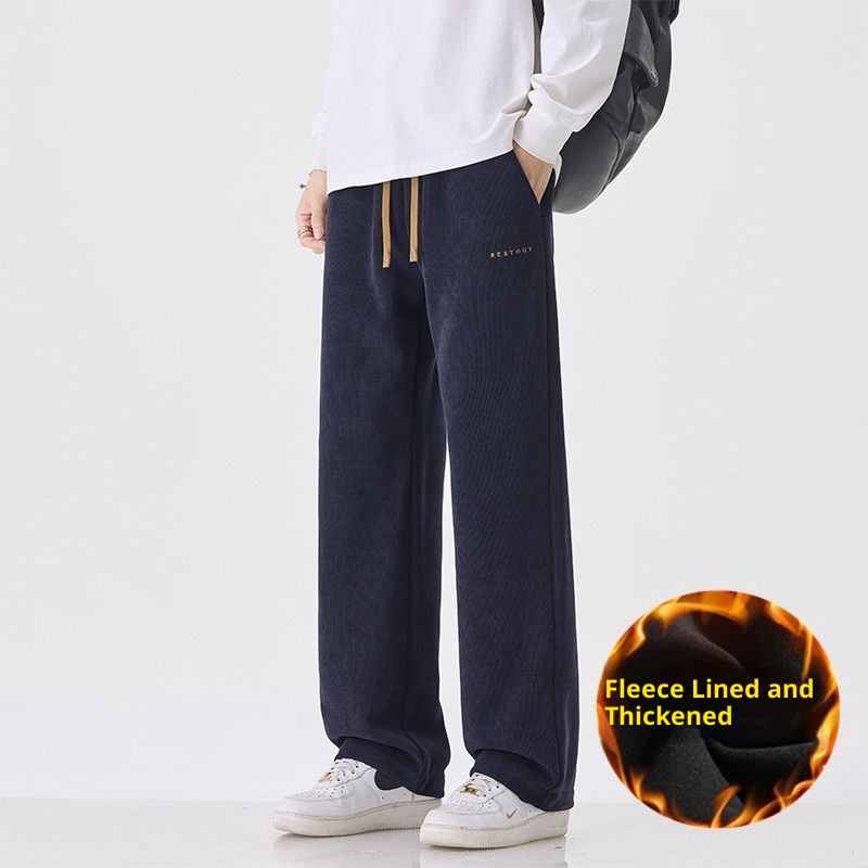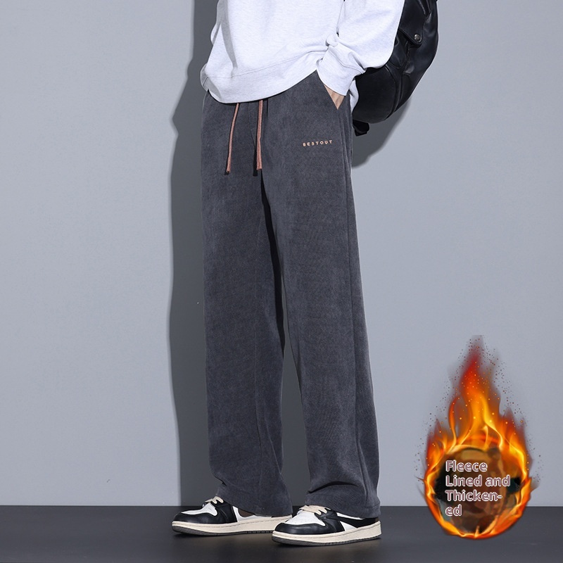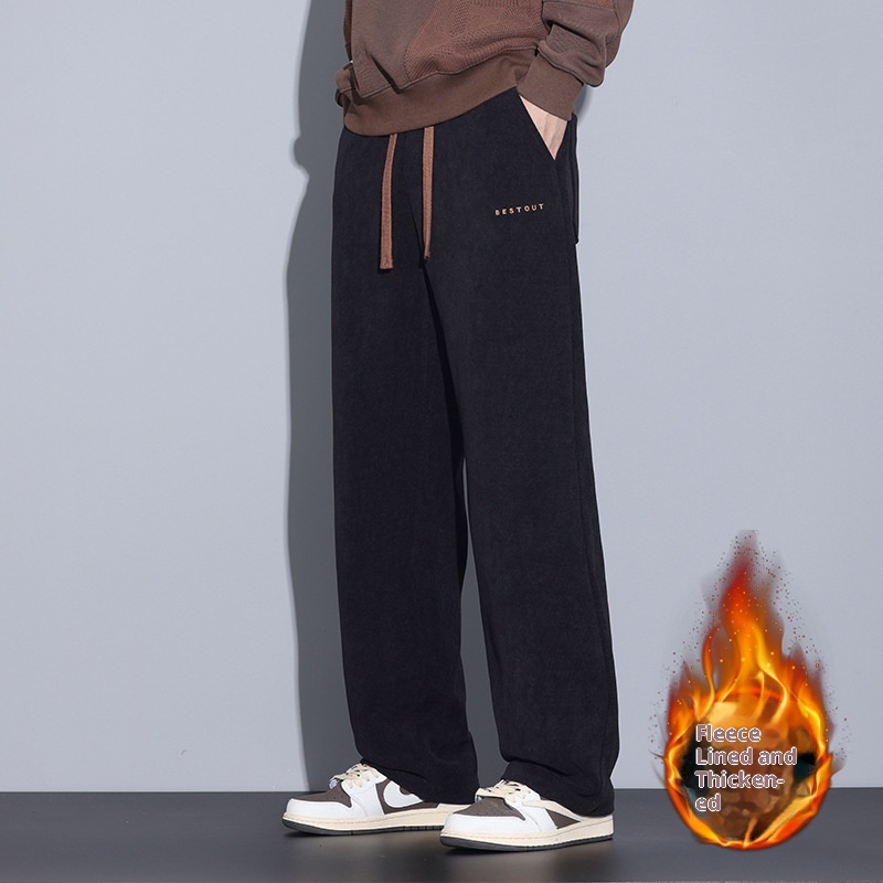 boy Men's Autumn Winter Thickened Fleece Casual 25 New Trendy Corduroy Loose Simple Versatile Straight-Leg Pants