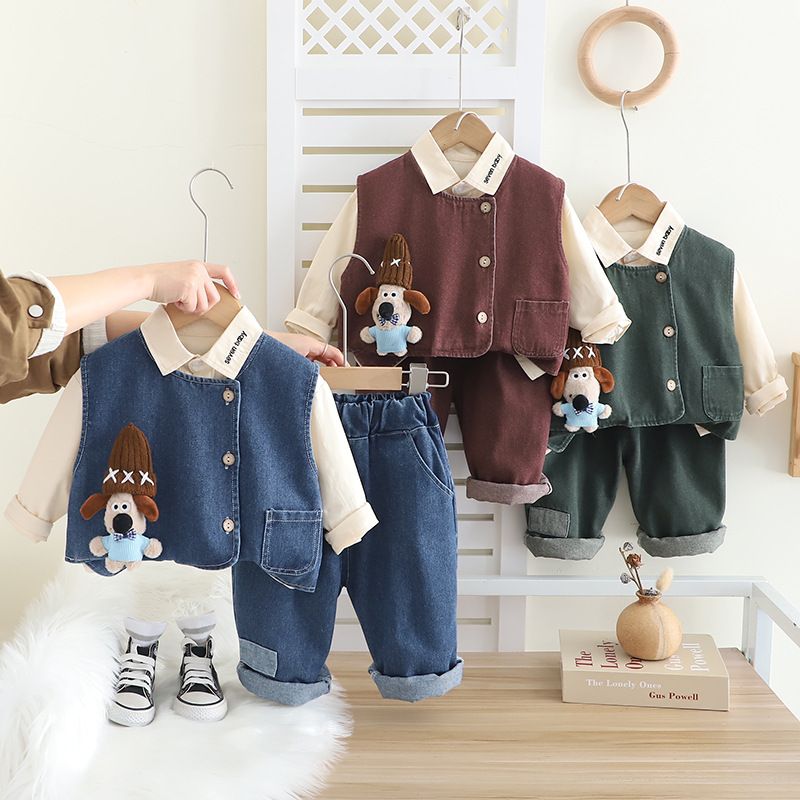 Boys' Autumn Outfit 2025 Spring And Autumn Baby New Style Children's Western-style Denim Vest Three Piece Set Clothes