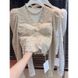 2024 autumn and winter brushed and velvet V-neck hollow out long sleeved short lace shirt women's slim fit top base shirt