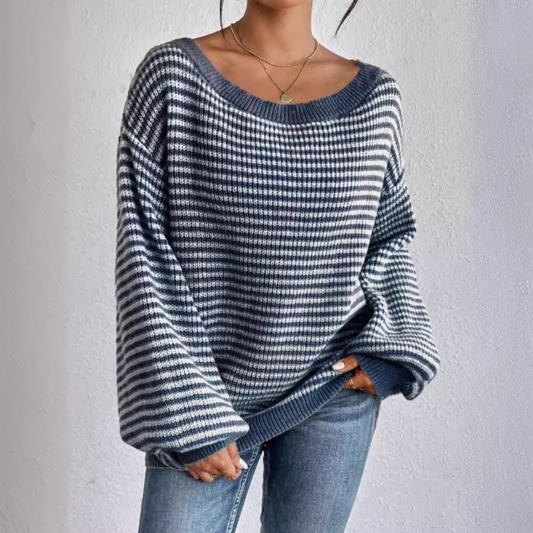 ChicShe ChicShe Autumn Winter New Off-Shoulder Striped Knit With One-Shoulder Collar, Drop Shoulder Sleeves, Lazy Fashion, European And