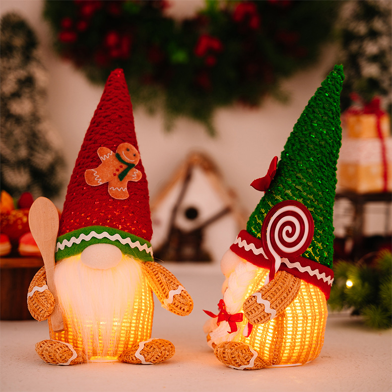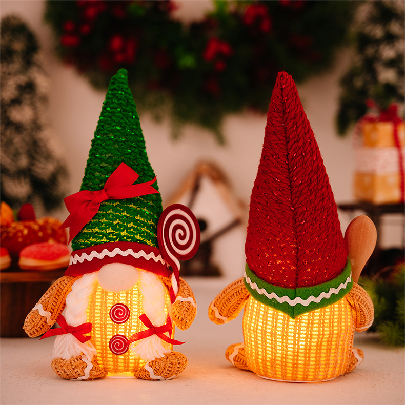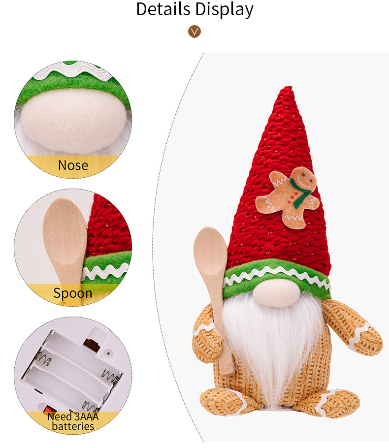 Božični okraski medenjaki Mož Svetleči piškoti Mož z rdečo in zeleno koničasto kapo trak svetlobna figura