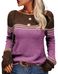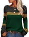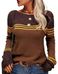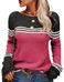 Cross-border autumn and winter new women's crocheted elegant commuter top European and American long-sleeved knitted striped color matching round neck