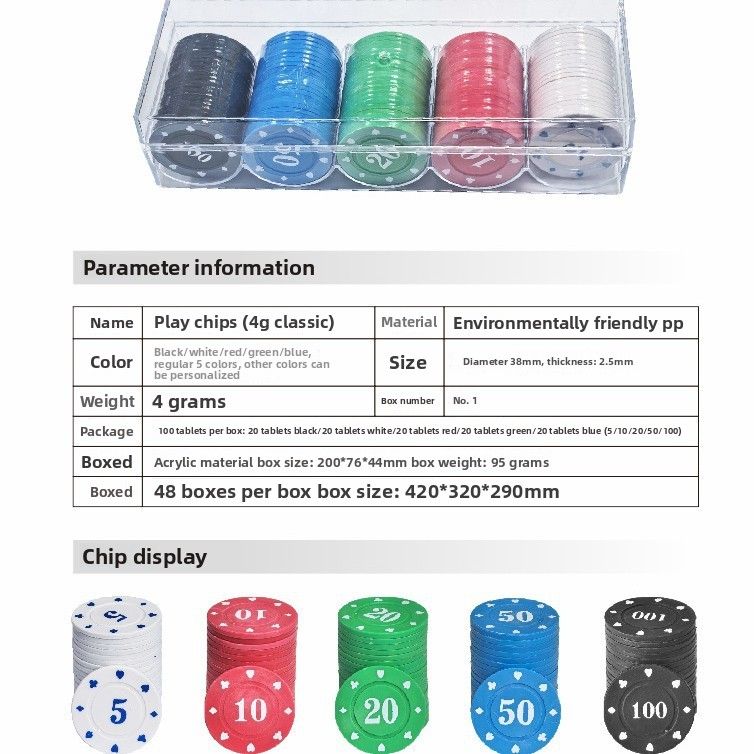 Cross-Border Chips PP Wear-Resistant Mahjong Chess Full Set Whole Box Texas Hold'em Reward Double-Sided Thickened Chips Coins Wholesale