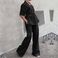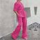 Women's Clothing Fashion Suit Cotton And Linen Short Sleeve Long Pants Two Piece Suit Belt Design Casual