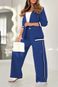 Ženska oblačila Lapel Enobarvni črtasti casual obleka hlače komplet