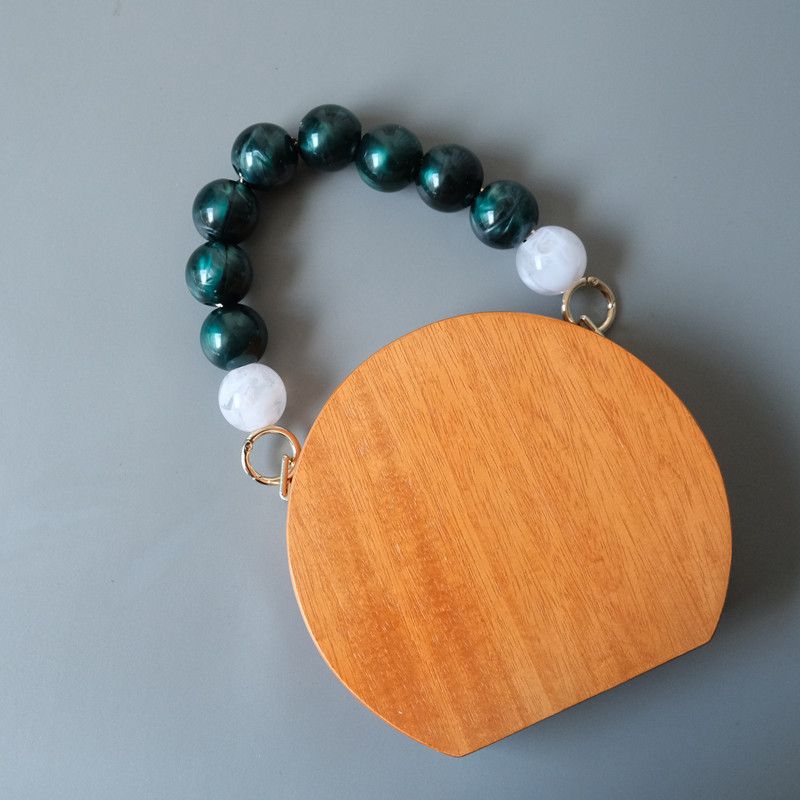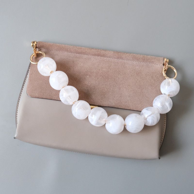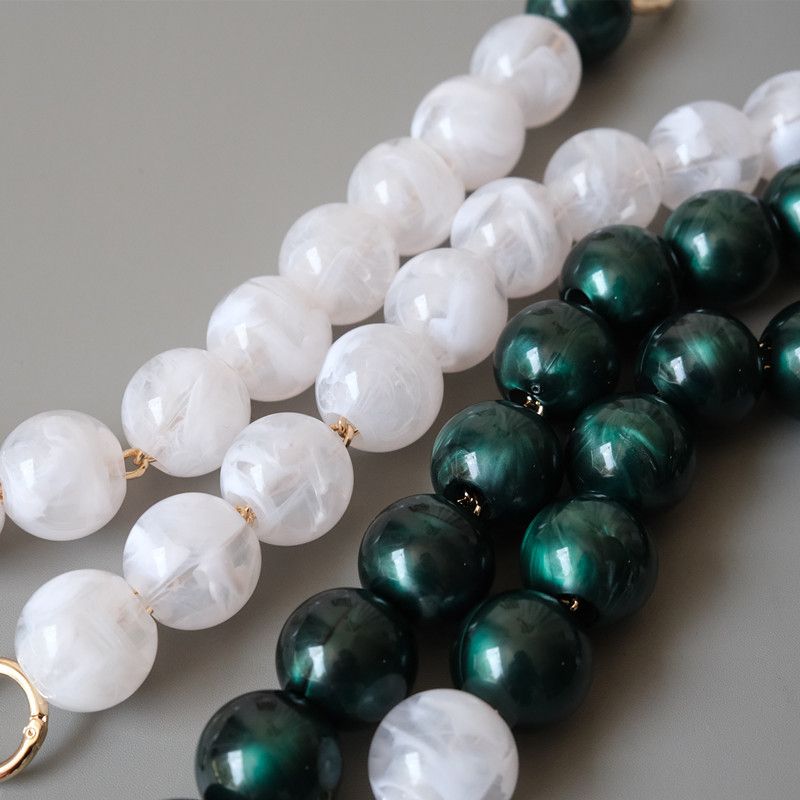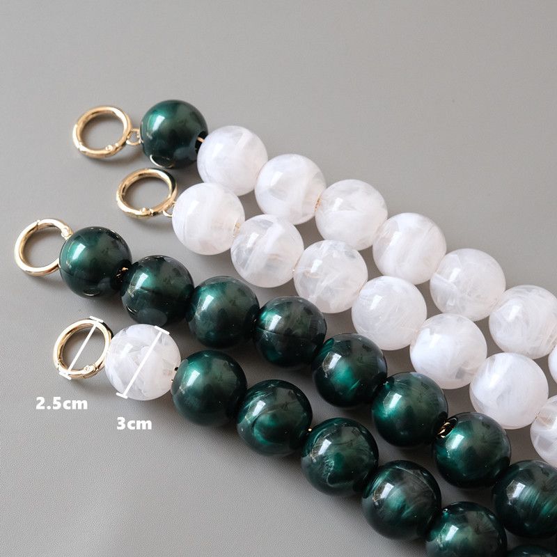 Colorful Acrylic Resin Bead White Green Contrast Handmade Thick Women's Bag Decoration Handheld Chain