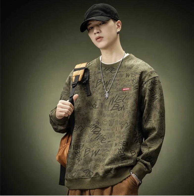 Product Source Category:In Stock,Brand:other,Item Number:ml-315,Year/Season of Release:Autumn 2024,Style:Trendy,Bargain Category:other,Design 1:Pullover,Is it hooded or not?:Without a hood,Front placket:other,Thickness:Average,Error margin:other,Suitable for the season:Autumn,Is it in stock?:yes,Main fabric composition:Polyester fiber 93.5% polyurethane elastic fiber spandex 6.5%,Content of the main fabric components:other,Fabric Name:other,Applicable Scenarios:Casual,Pattern:Alphabets/Numbers/Characters,Design details:Pullover,Design:Loose Fit,Craftsmanship:other,Clothing Pocket Styles:Pocket-Saving,Color:Black, Gray, Military Green,Size:M,L,XL,XXL,3XL,4XL,5XL,Suitable for everyone:Youth,Sleeve Style:Regular,Pocket Design:other,Original Design Source:No,Is there a quality inspection report?:No,Quality Inspection Report Number:other,Gram weight:180g included - 250g excluded,Suitable age group:adult,Applicable Gender:Male,Product Category:Fleece Sweatshirt