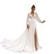 Elegant V-Neck Long Sleeve Chiffon Wedding Dress With Small Train – Boho Beach Bridal Gown For Photoshoot, Flattering High Waist(US2-26W, Ivory/White)