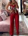 Ženska oblačila Modni kostum ženske ozke barve z dvojnim zapenjanjem in ravnimi hlačami