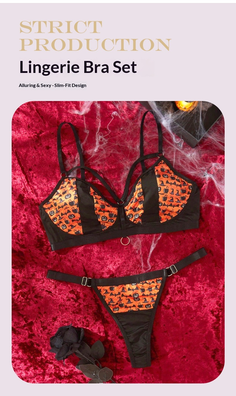 Eros Lab Cross-Border New Halloween Pattern Sexy Pure Desire Lingerie European And American Plus Size Push-Up Bra Two-Piece Set