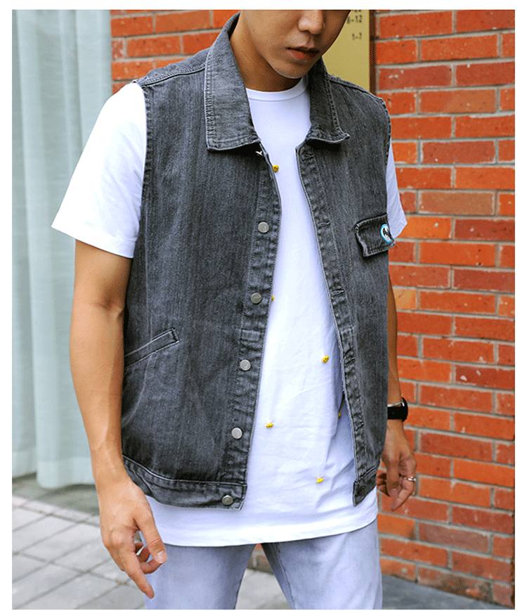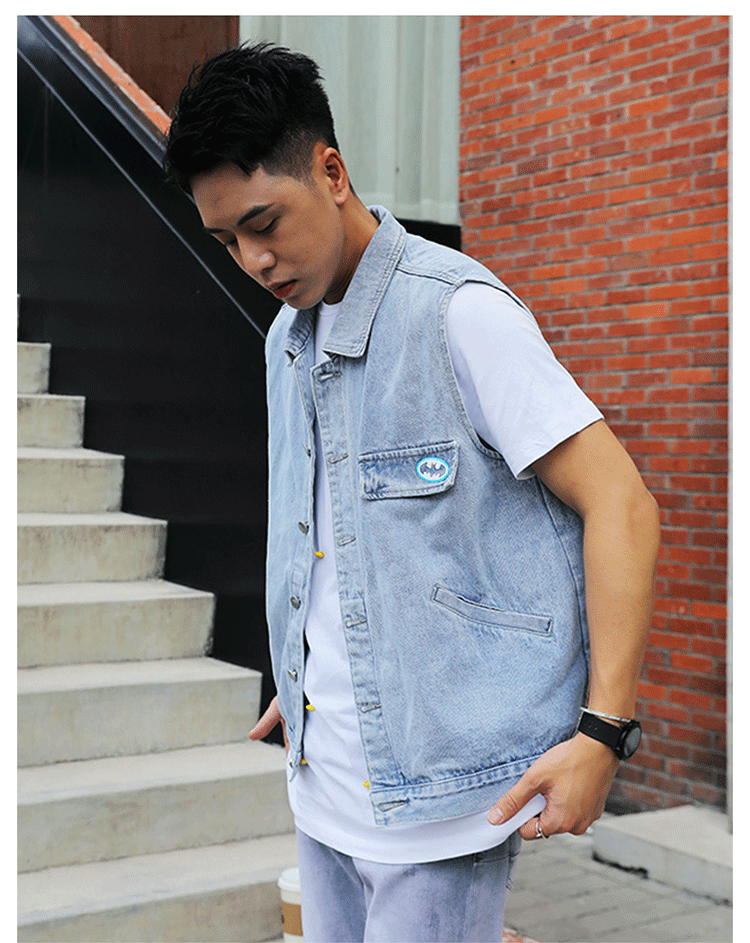 Čezmejni 2023 novi kombinezon brez rokavov z reverjem, ramenski telovnik, priložnostna ulična modna znamka, ohlapen jeans telovnik