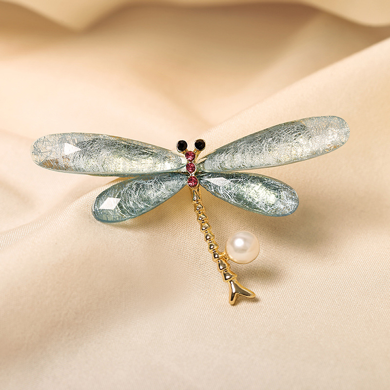 Freshwater pearl temperament fashion corsage new blue dragonfly elegant brooch fixed clothes to prevent exposure