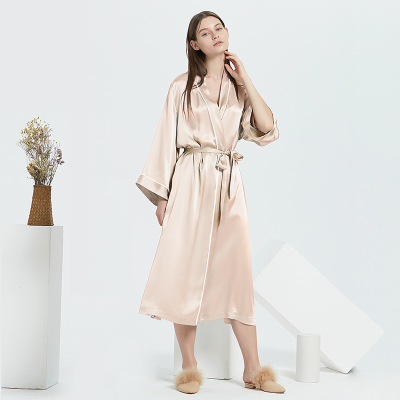 Product Category:Pajamas,Fabric Name:Silk,Design:Cardigan,Main fabric composition:Mulberry Silk,Thickness:Average,Collar Style:Collarless,Sleeve Length:Long Sleeve,Functionality:Casual, breathable, sleep, loungewear, cool, comfortable,Time to market:Spring 2022,Suitable for the season:Summer, Winter, Spring, Autumn,Applicable to all categories of people:Ladies,Color:Mint Green 19 Mm Heavyweight, Taro Purple 19 Mm Heavyweight, Light Apricot 19 Mm Heavyweight, Mint Green, Taro Purple, Light Apricot,Size:M,L,The thickness of the silk fabric:16mm,Origin:Suzhou,Item Number:2206003,Is it exclusively for cross-border export supply?:No,Main fabric ingredient content:100%,Style:Artistic