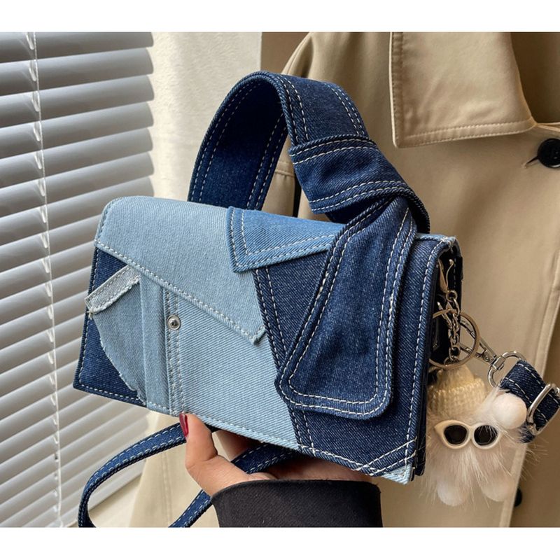 Handbag for women, fashionable denim patchwork crossbody bag, niche and versatile casual shoulder bag, simple denim small square bag