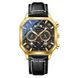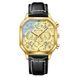 High Quality Multifunctional Watches For Man Golden Case Octagonal Dial Leather Strap Quartz Wristwatches Clock Gifts