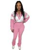 HR25015 Women's Clothing Elastic Waist Color Block Patchwork Contrast Sports Casual Two-Piece Pants Set