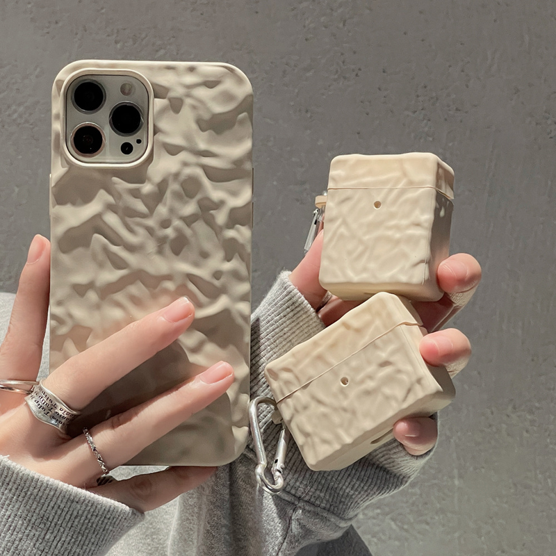 INS Wrinkle Foil Pattern Compatible With 1/2/3 Generation Earphone Protective Case Pro Solid Color Concave Soft