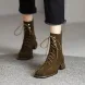 Lace Up Martin Boots: Winter Trendy Retro Versatile Square Toe High Heel Boots, Black/Green, 2024 Collection, Free