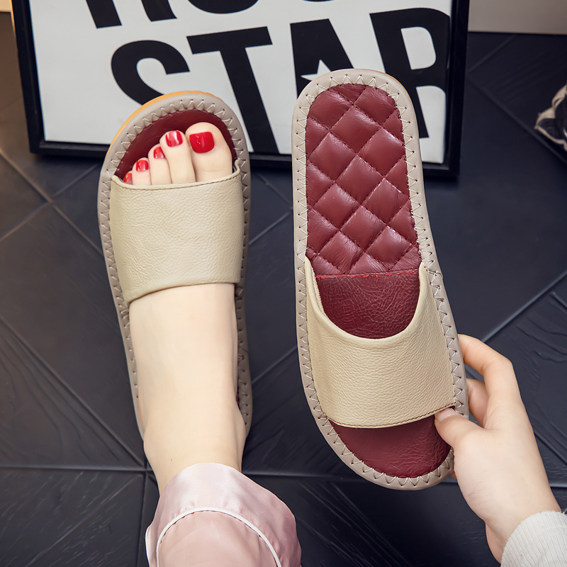 Lady Sandals Indoor Leather Rubber Quick Drying Flip Flops