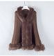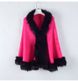 Luxury Knitted Cape Shawl With Faux Fox Fur Collar - Elegant Women's Outerwear For Winter & Spring