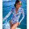 Women's Clothing New Blue Print Sexy Triangle One Piece Swimsuit Round Neck Racing Zipper Surfing Suit