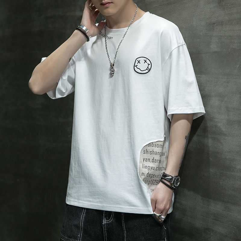 Men's 2023 Summer New Pure Cotton Short Korean Edition Trendy Brand Smiling Face Bottom Shirt Versatile Half sleeved