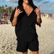 men's cotton and linen large pocket design sets, hooded three quarter sleeve top, elastic shorts, loose