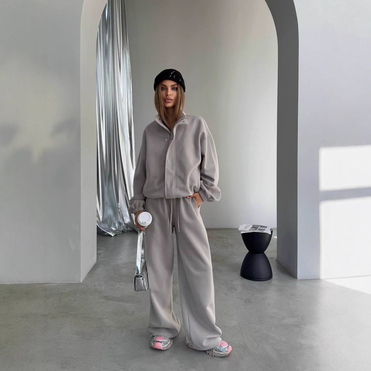 Minimalist Zip-Up Hoodie & Straight-Leg Pants Set – 95% Cotton Lounge-to-Street Coord (Oversized Fit, Neutral Palette, Wrinkle-Resistant)
