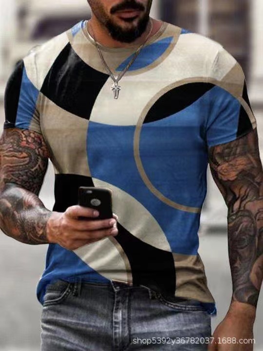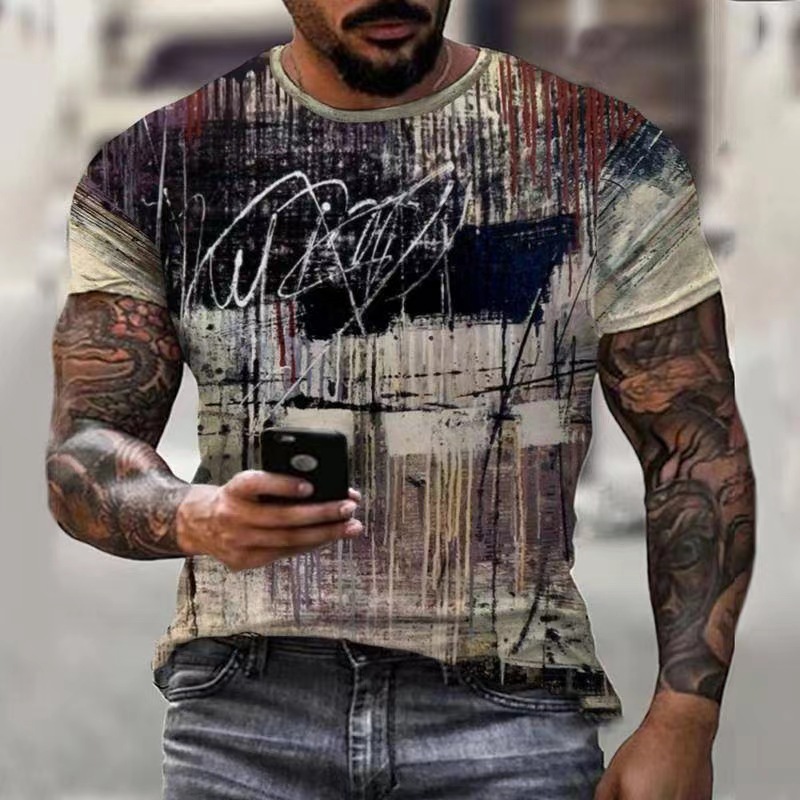 2021 New Men's Summer New Trendy Street Print Round Neck Short Sleeve T-shirt