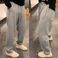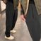 Moška oblačila 2025, pomlad in poletje, enobarvne hlače za prosti čas, ravne hlače z reliefnimi črtami, vsestranske, ohlapne športne hlače za prosti čas