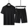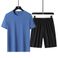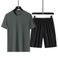 Moška športna obleka za tek, prosti čas, ledeno svilena najlonska majica s kratkimi rokavi, zračne raztegljive kratke hlače iz dveh kosov