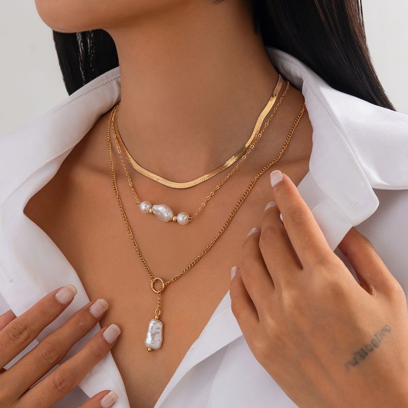 Modna in kul stilska biserna obeska v obliki ključnice, verižica z neoprensko bakreno ogrlico iz železa