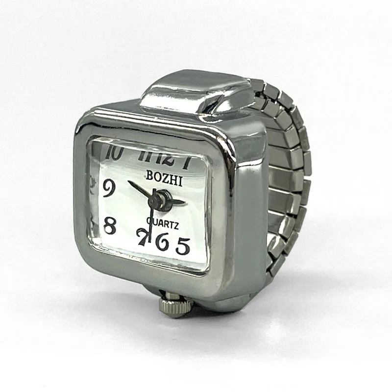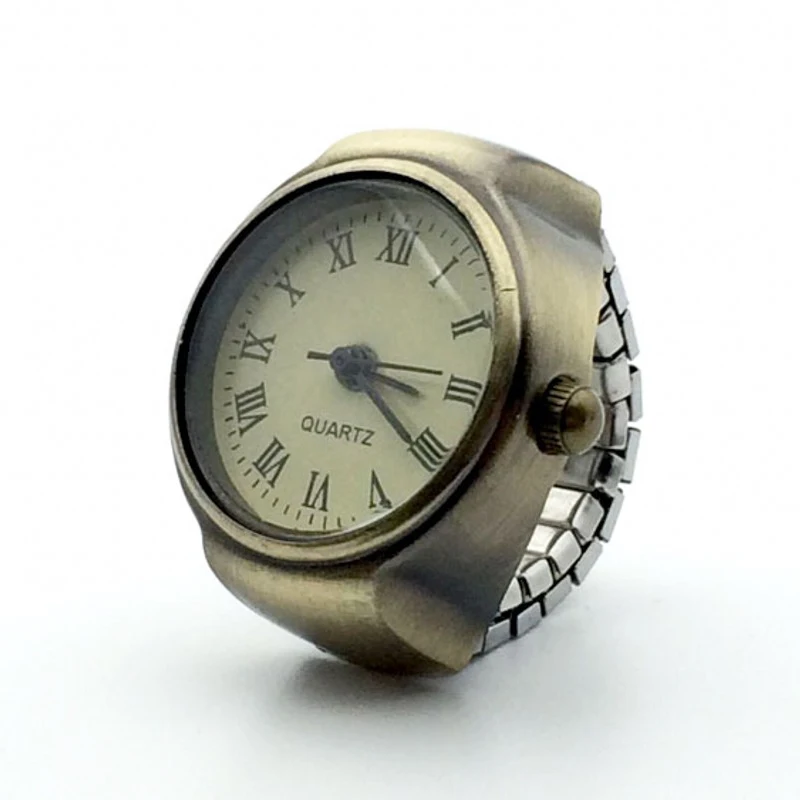 Retro Mini Pink Finger Watch, Alloy Elastic Strap Watch, Watch, Retro Roman Quartz Watch with Ring for Men and Women