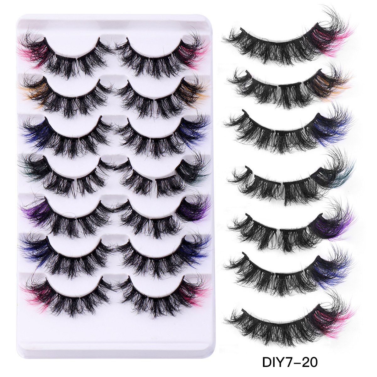 New 7-pair color imitation mink fur segmented false eyelashes with natural curling and puffing style, simulated grafted eyelashes