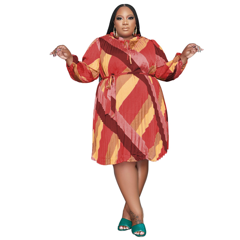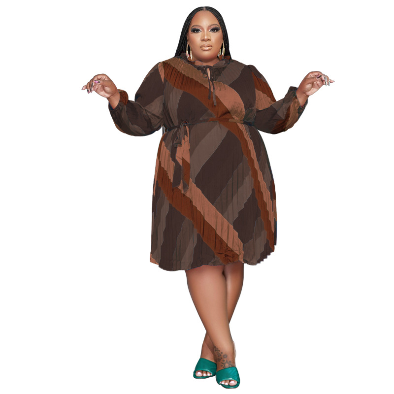New Stripes with Belt Fashion Loose Women's Plus size Dresses