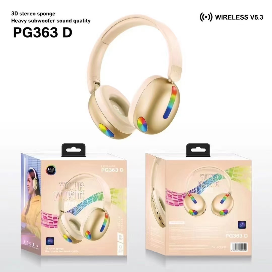 New PG373D Head mounted Insert Card Bluetooth Earphones RGB Lights 3D Sponge Sports Earphones
