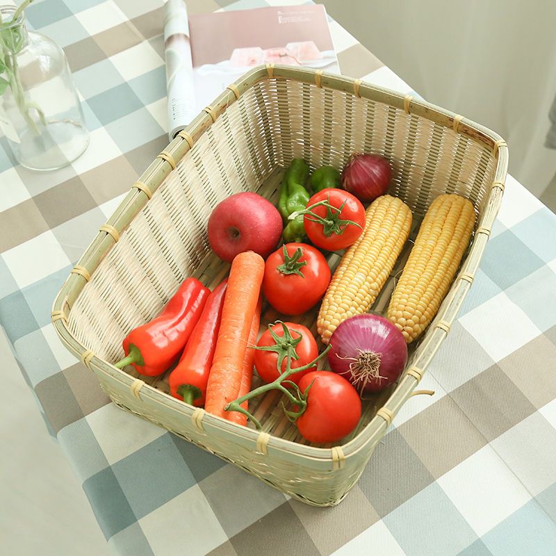 Old-fashioned Bamboo Weaving Product Handmade Rectangular Dustpan Agricultural Household Large Kitchen Fruit Basket
