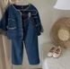 Otroška oblačila za dekleta, retro modna jeans jakna s surovim robom, zgornji del širokih hlač