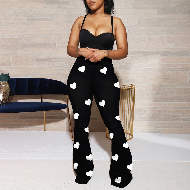 Ženska oblačila, denim hlače z visokim pasom in potiskom ljubezni Ženske kratke hlače